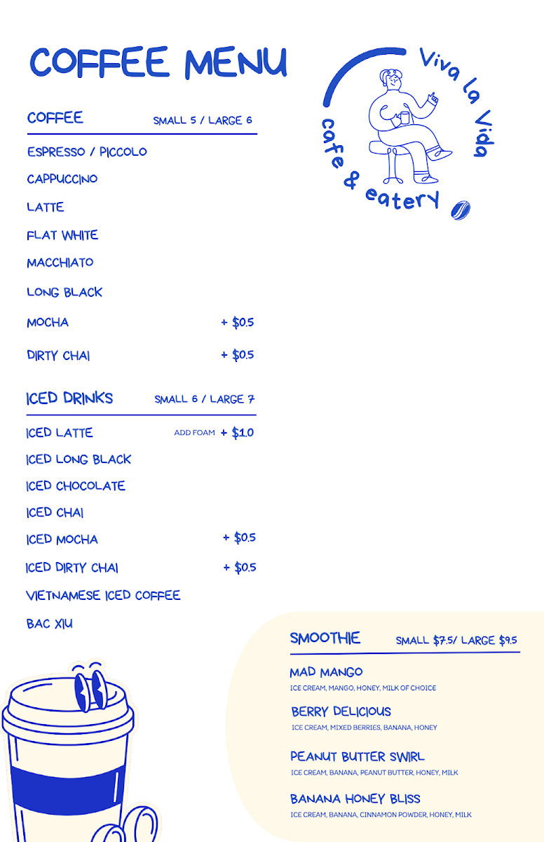 Welcome to Viva la Vida, a charming cafe nestled in Sherwood, Australia. Known for its inviting atmosphere, this cafe has quickly become a beloved spot for locals. The menu boasts an impressive array of drink options, from refreshing iced delights like Iced Long Black to creamy smoothies such as Mad Mango and Peanut Butter Swirl.